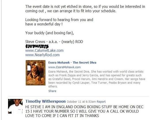 Update: The "Beg Timmy to Listen" sweepstakes (ha) - Our buddy (and Two-Time World Heavyweight Boxing Champion) Timmy Witherspoon wants to come to say hello and enjoy some performances.